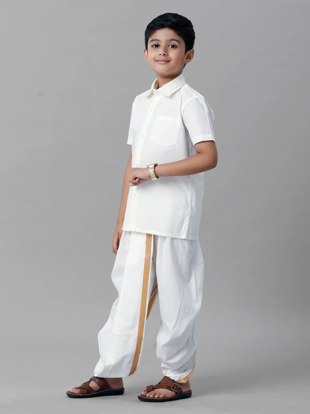 Boys Cotton White Half Sleeves Shirt Panchakacham Combo