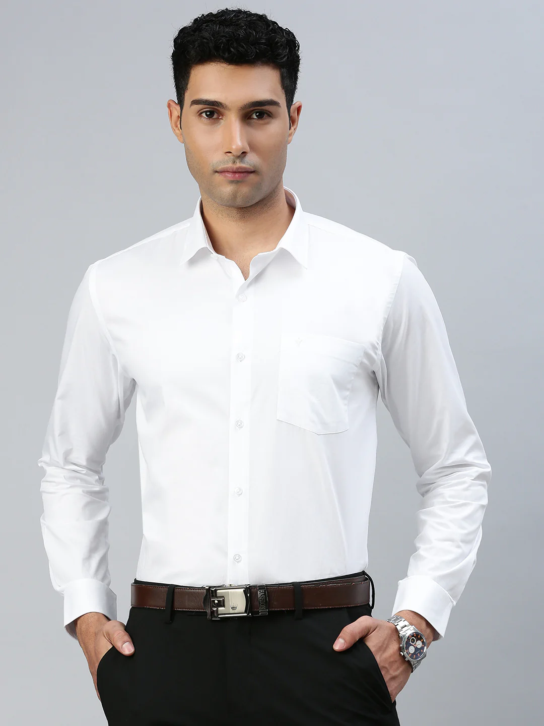 Indulge in the luxurious comfort and timeless style of this men's white shirt with half & full sleeves, expertly tailored from 100% premium quality cotton. Its prestigious fit is accentuated by a regular collar that adds to its classic look and guarantees unmatched comfort. The half sleeves not only enhance its stylish appeal but also provide a breezy feel, keeping you cool and comfortable even in hot weather. Meticulously designed with high-quality fabric, this shirt is an epitome of sophistication, making it an ideal fashion statement for those who seek comfort with style.