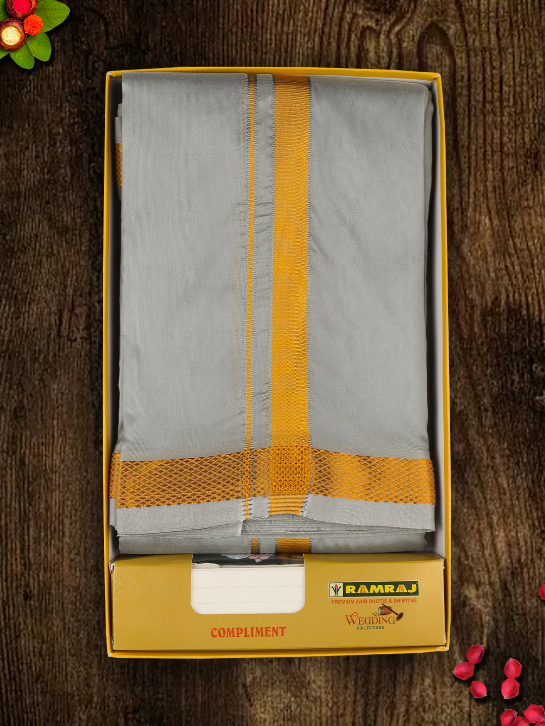 Men Art Silk Jari Dhoti & Shirting Set Grey Ashirwath (2 in 1)