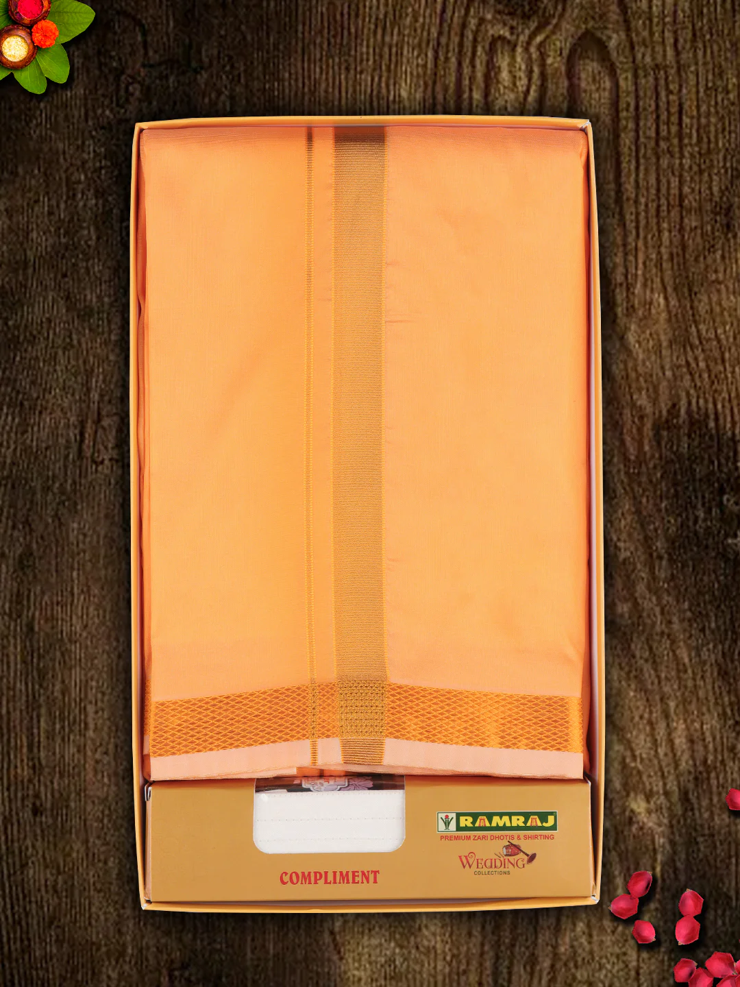 Men Art Silk Jari Dhoti & Shirting Set Orange Ashirwath (2 in 1)