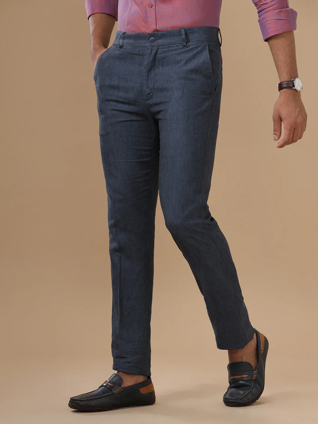 Men Linen Cotton Grayish Blue Pant with Trim Fit LC10