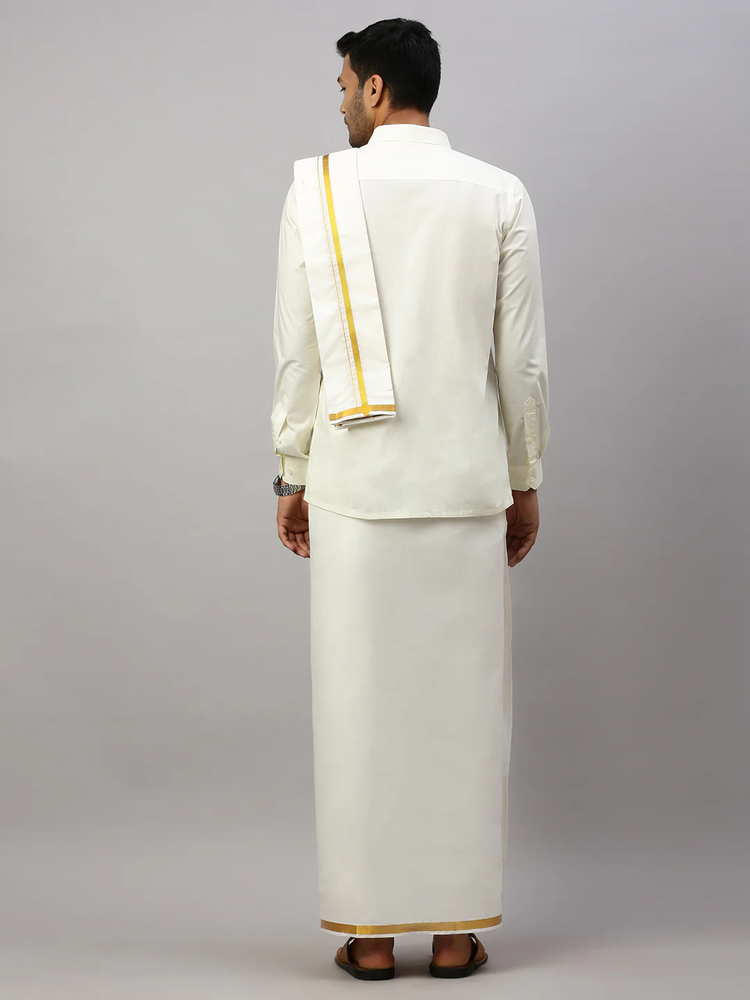 Premium Wedding Cream Dhoti Shirt & Towel Set Golden Reward