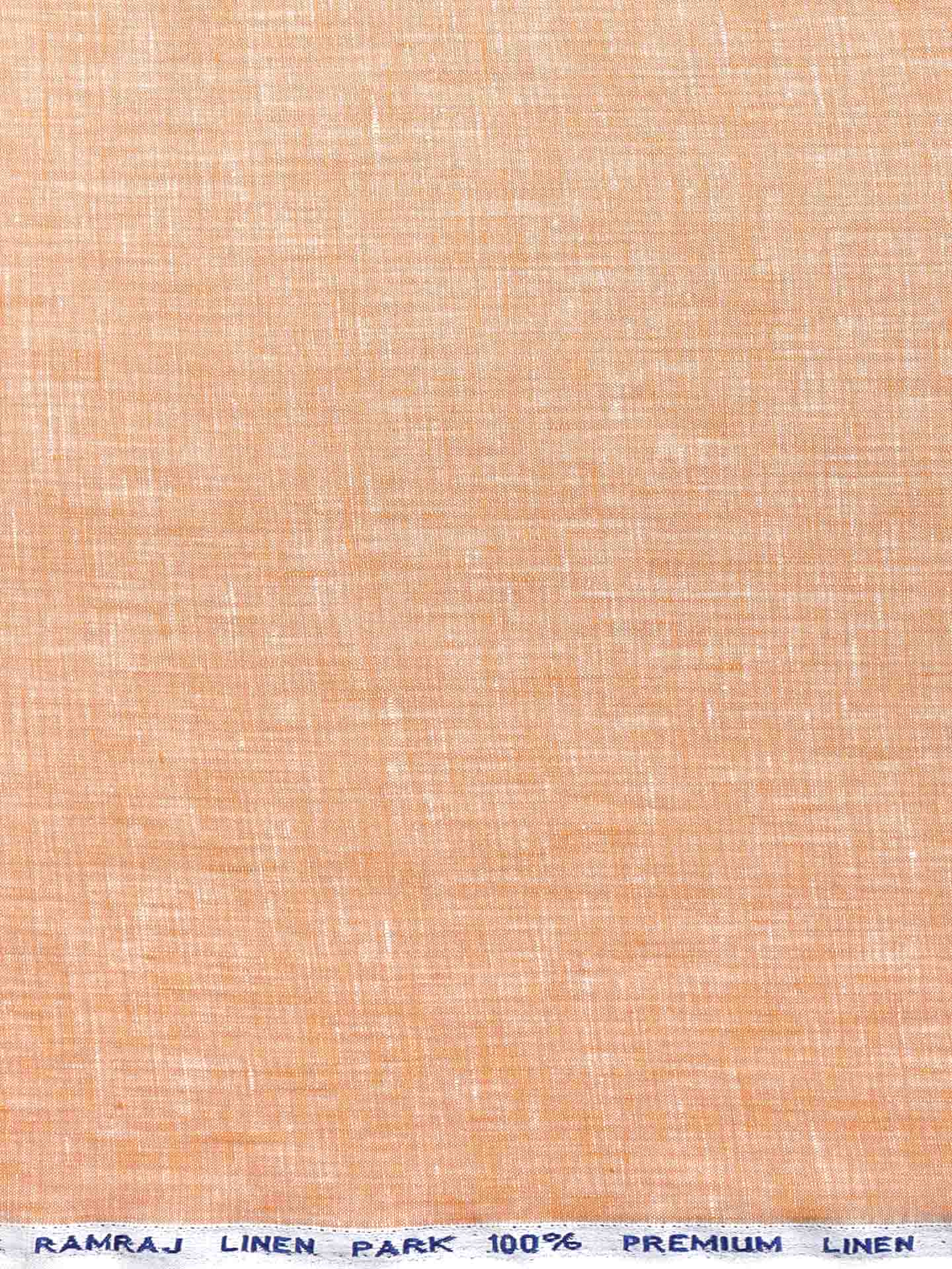 Men Pure Linen Orange Colour Plain Shirt Fabric Irish 8080