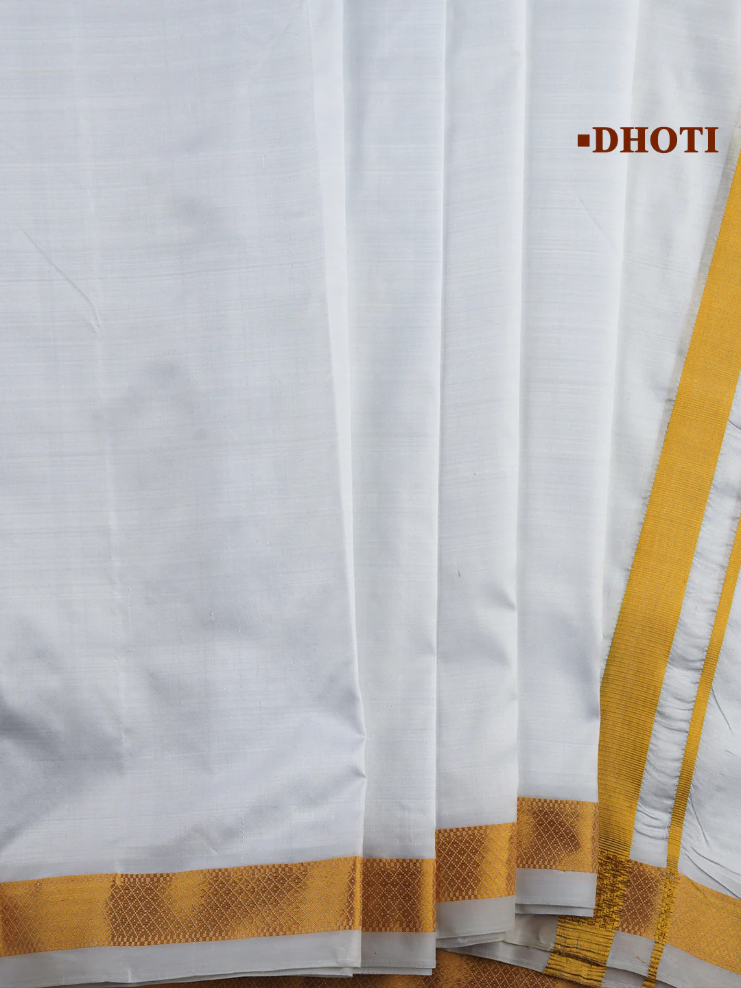 Men Pure Silk White with 1" inch Jari Border Double Layer Dhoti & Towel Set