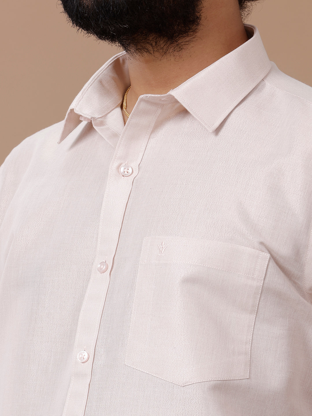 Men Tissue Rose Gold Dhoti & Half Sleeves Shirt Set