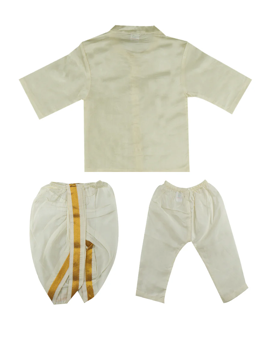 Born Baby Soft Silk Shirt Pant and Panchakacham Set Cream